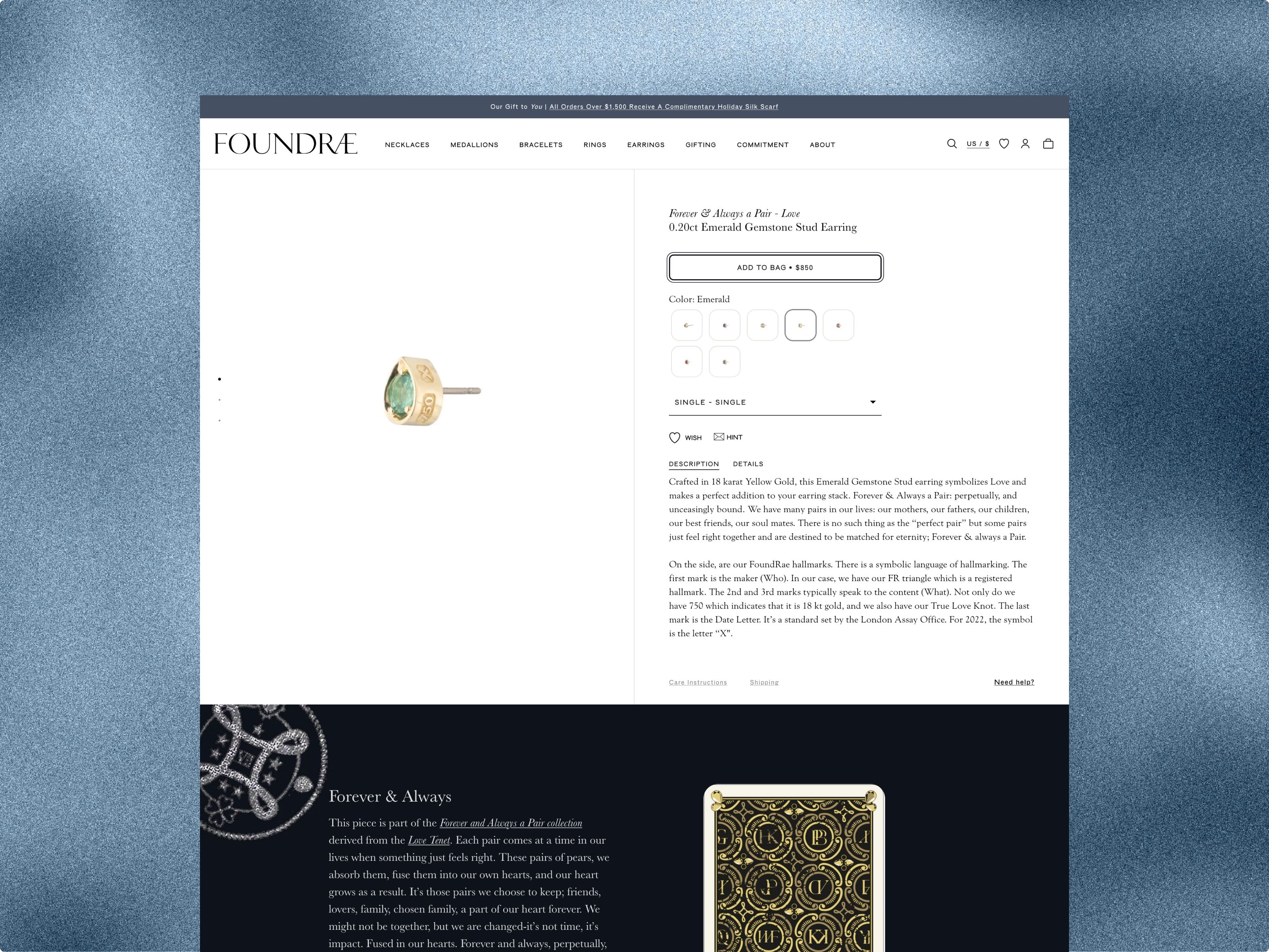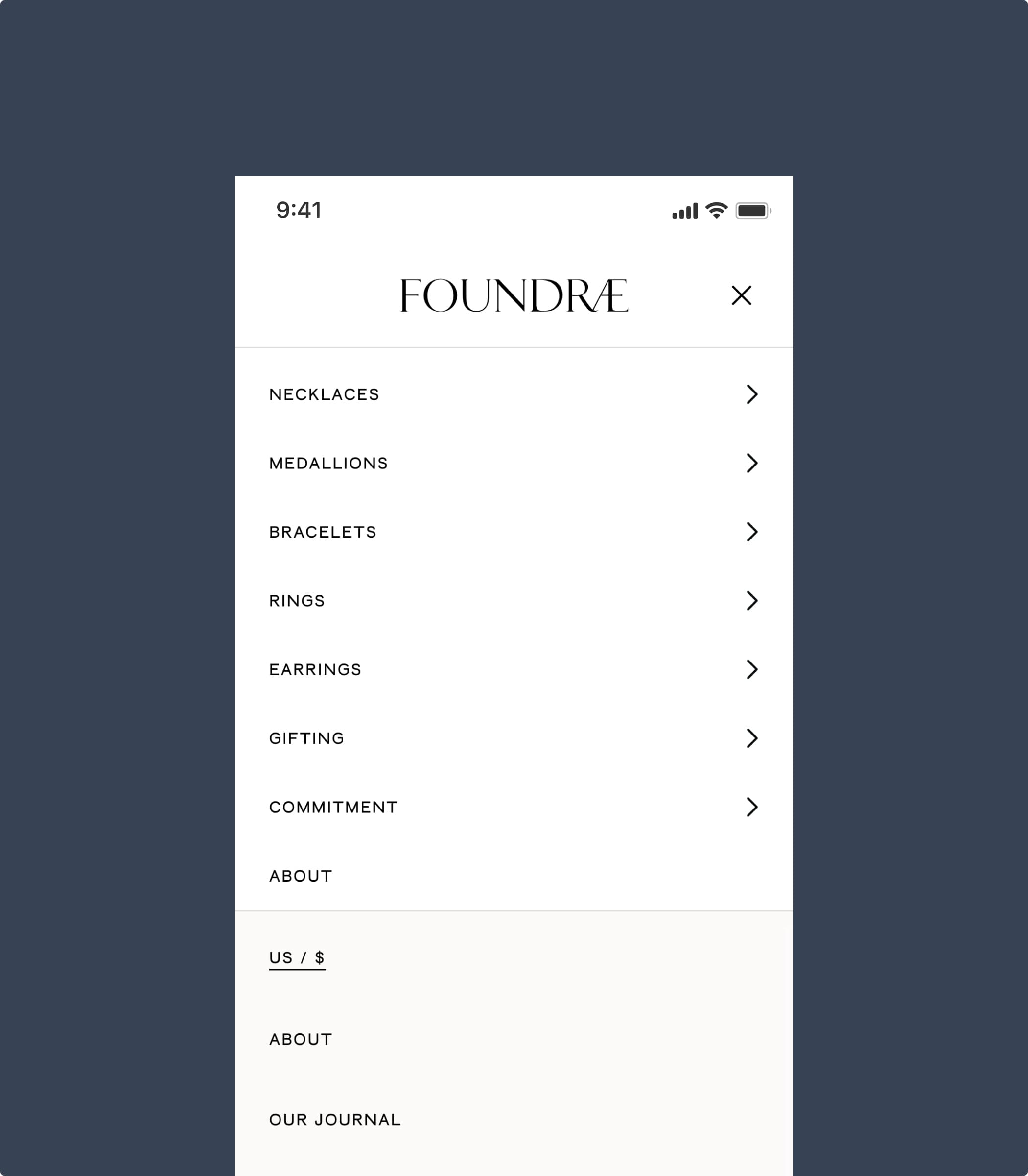 Foundrae was already priced and crafted as luxury, but the UX didn’t give customers the same confidence as the pieces themselves. We softened the experience into a calm, deliberate journey: fewer steps, clearer hierarchy, and space for the price to feel justified. Craftsmanship, materials, and guarantees now frame every key decision, so the interface quietly supports commitment instead of hesitation.